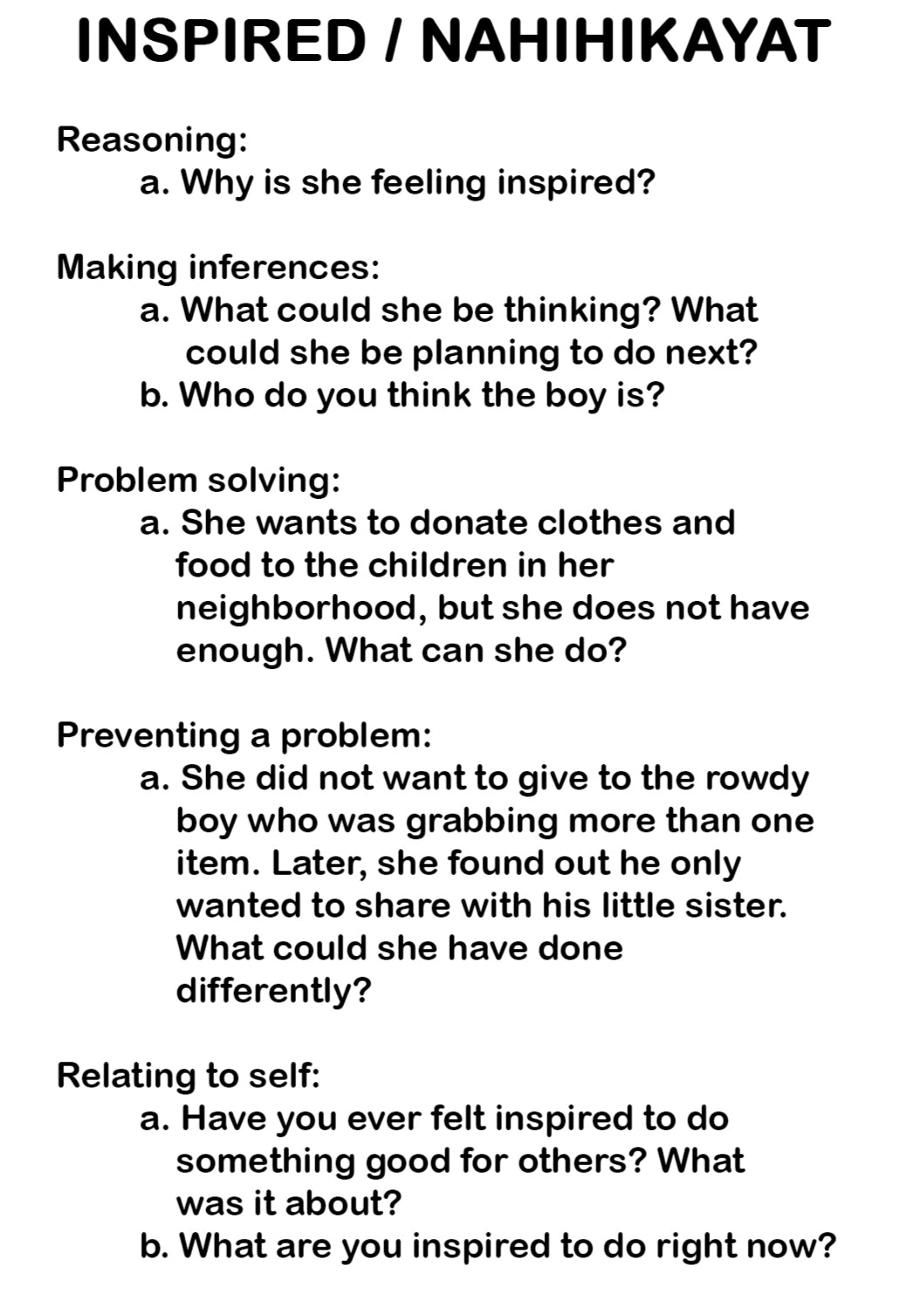 - with Guiding Questions to improve critical thinking skills (eg: reasoning, problem solving, making inferences, prevention, self-reflection)